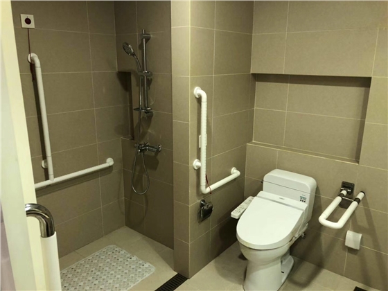 衛(wèi)生間里的無障礙扶手如果是蹲便器可以在靠墻的一邊安裝上一字型或L型扶手,浴室里的墻邊也可以安裝兩個(gè),老年人上廁所、洗澡可以輔助借力獨(dú)立完成,如果家里沒人時(shí)刻照料,這種無障礙扶手是不錯(cuò)的選擇!
